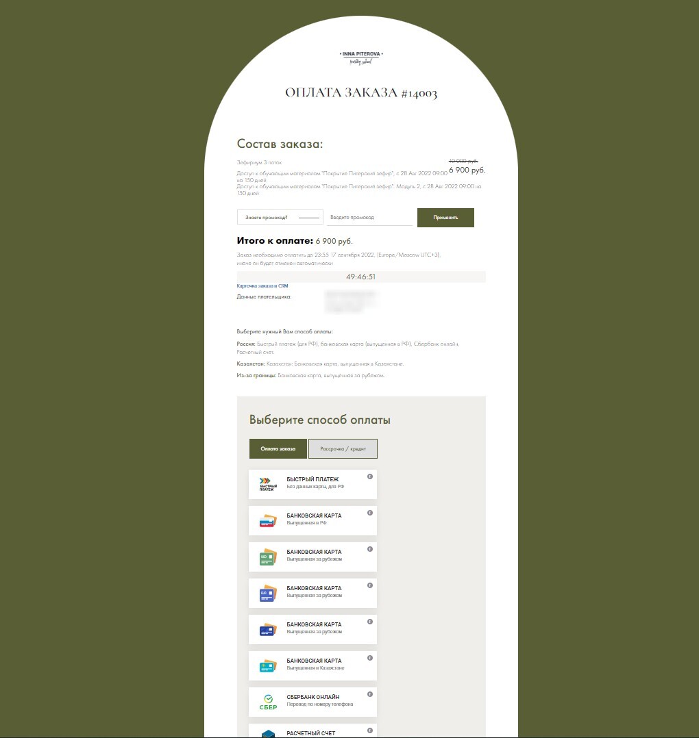 Очень красивую и функциональную страницу оплаты заказа на гк сделала Лариса для нашей школы ЛавГав💜.