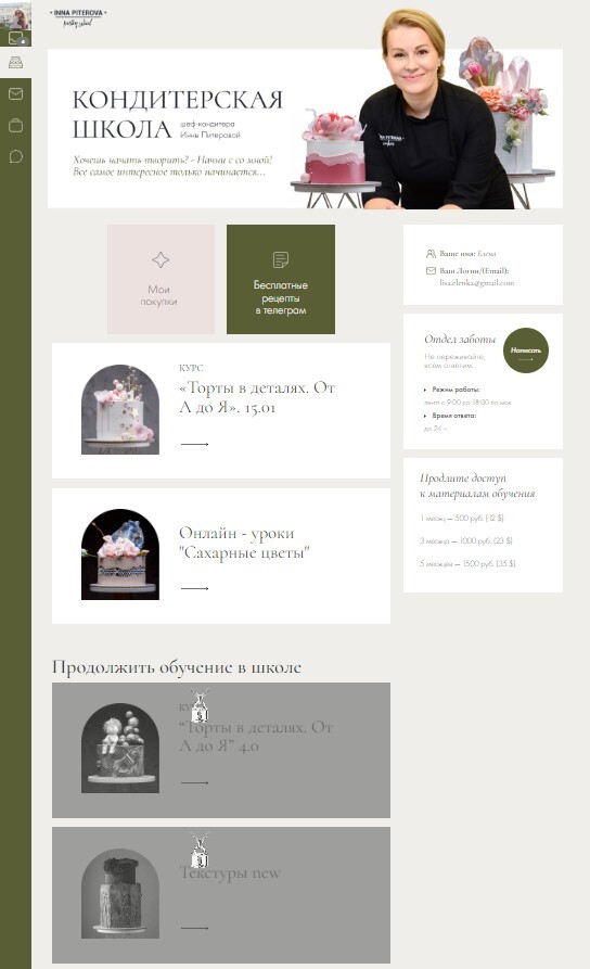В канале можно посмотреть мои работы по вёрстке личного кабинета и системных страниц на платформе GetCourse